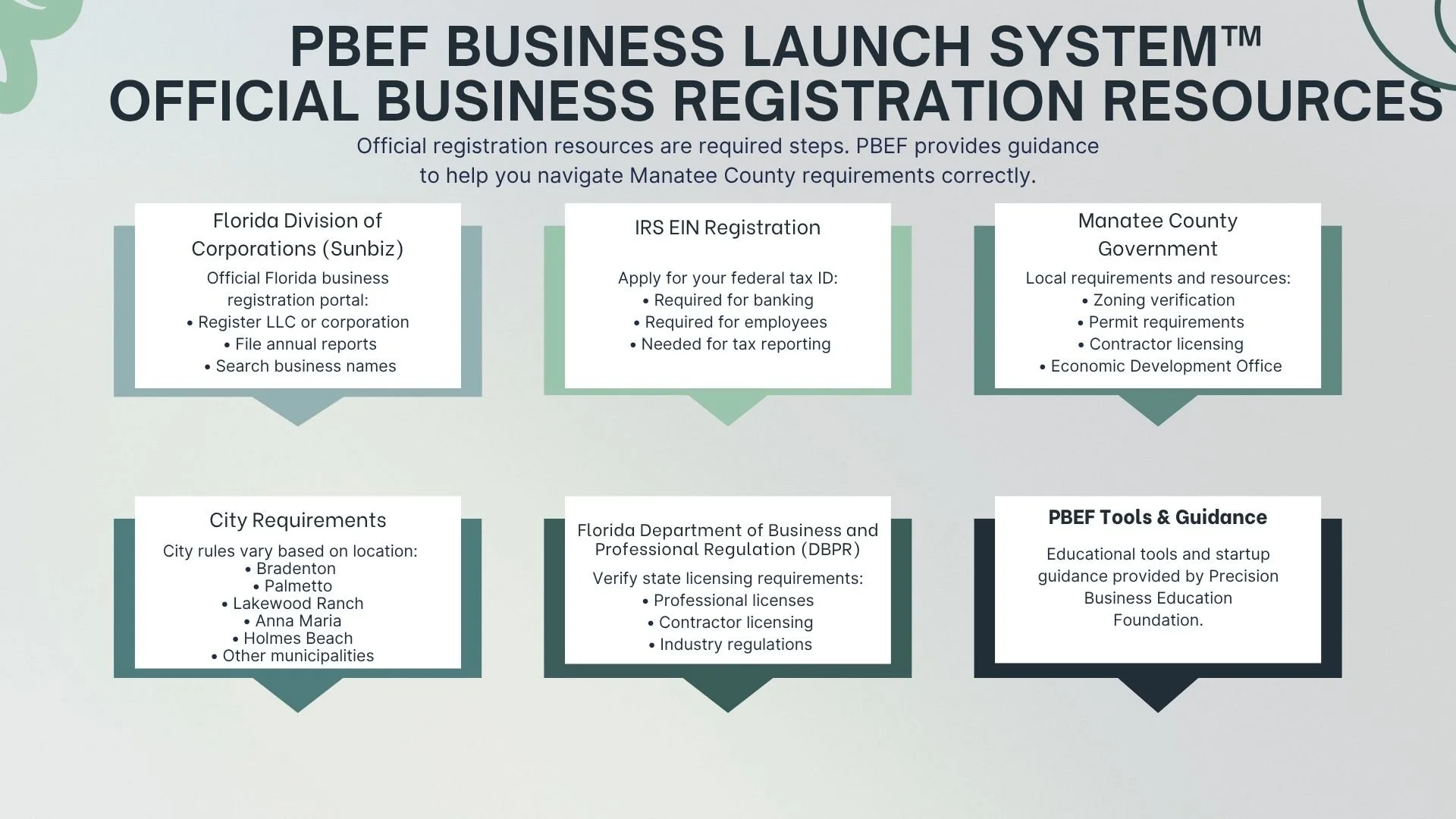 Official registration resources are required steps. PBEF provides guidance to help you navigate Manatee County requirements correctly.